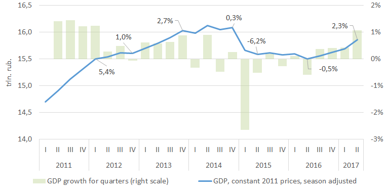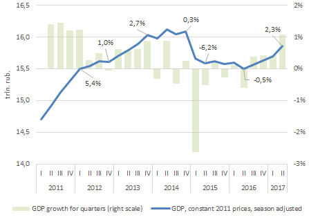 The Russian economy enters a period of recovery. Over the past year, the average annual GDP growth rate was 2.3%.