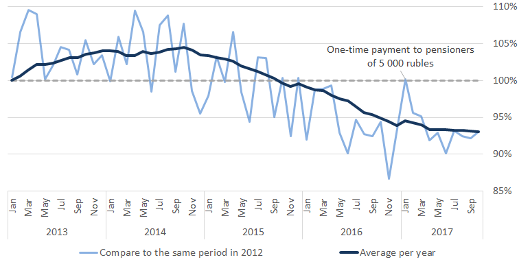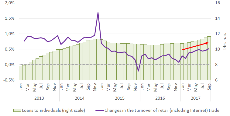 The stagnation of income is another factor hampering the growth of the economy. Companies focused on domestic demand, hardly increase turnover in such conditions. In the autumn of this year, the retail trade turnover exceeded the levels of 2012, but still remains below 2013-14. And the growth of retail trade in 2017 is due to an increase in the volume of credits. The population is gradually moving away from the anti-crisis savings model of behavior, but without increasing the revenues there will not be sustainable growth in the retail sector.