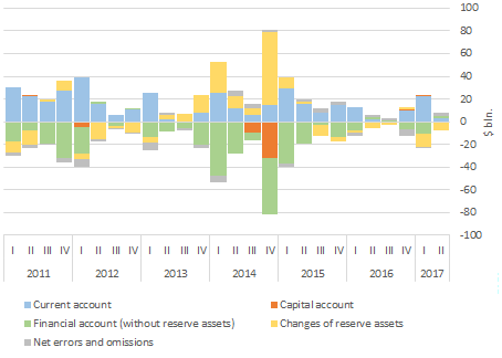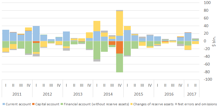 The situation is stable in the area of foreign trade. The balance of payments retains its traditional proportions - the current account has shrunk, but still remains surplus. The financial account is still generally deficit, which implies a continuing outflow of capital.