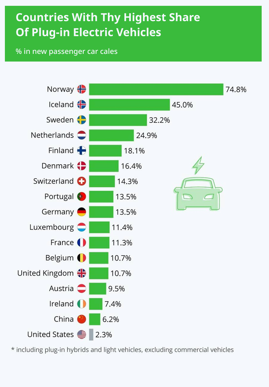 Europe accounts for more than half of all sales of hybrids and electric vehicles - 57% of the global market. In 2019, 1.26 million new cars were sold across Europe.