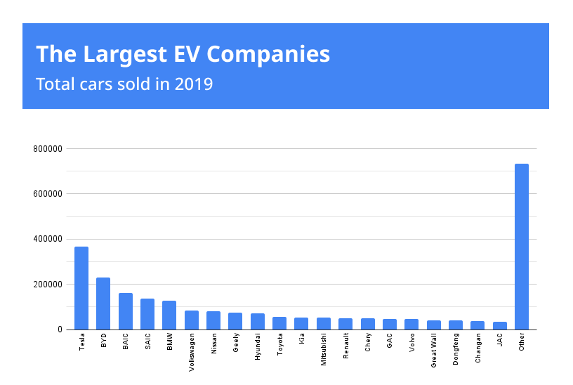 Yes, all over the world the position of Elon Musk's company is dominant. Last year, Tesla sold 367,820 vehicles, an undeniable record. BID's Chinese concert comes second in terms of production. The name of this company is not so widely known all over the world. At the same time, in 2019 BID sold almost 230 thousand cars and is the absolute leader in its country.