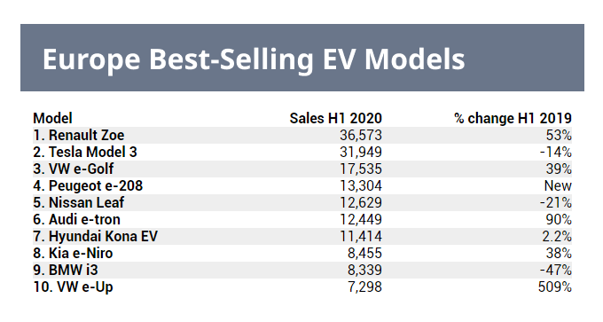 It is curious that this year there was a change of leader. Renault Zoe became the most popular in the first six months of 2020.