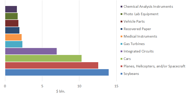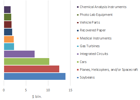 China has already imposed duties on the main items of U.S. exports - soybeans, airplanes and cars, and at a maximum ratio of 25%