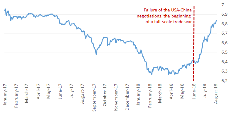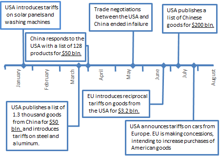 The next round of trade restrictions fell directly on China – tariffs on a wide range of goods for $50 billion and threats to introduce duties for another $200 billion. Thus, the duties on 10% of China's imports to the USA have been already introduced, and half of the remaining import is under the gun.
