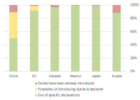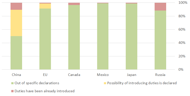 As for Russia, the tariffs on steel and aluminum affected almost 12% of imports to the USA. However, in absolute terms, this is not much- $ 2.1 billion. Russian-American