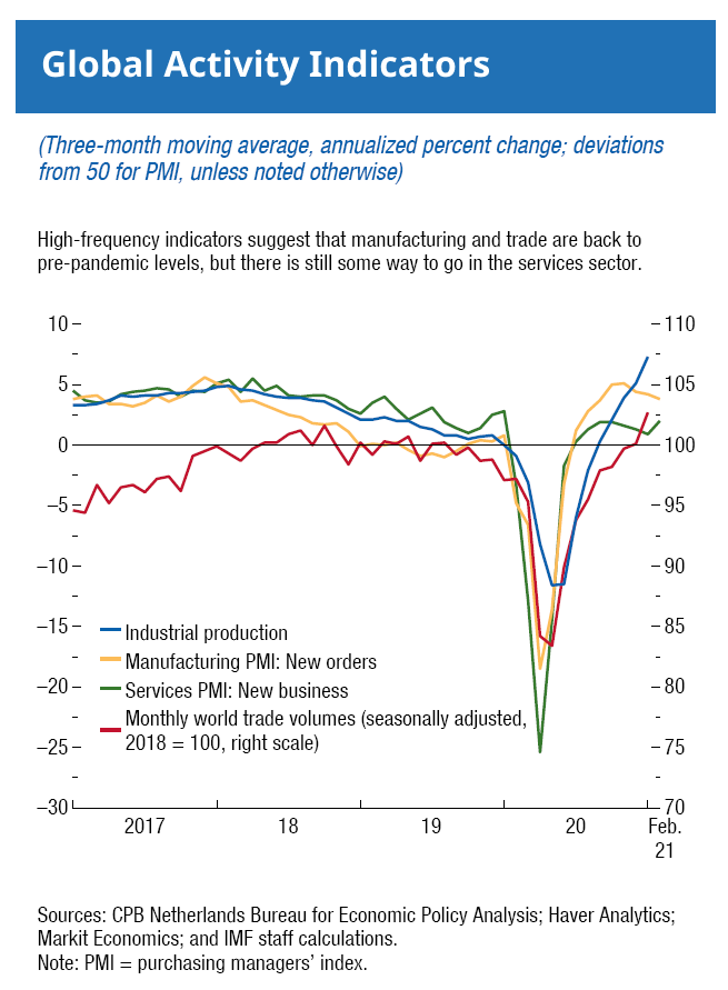 After a brief and synchronized decline, industrial production returned to its pre-pandemic levels. However, consumption in high-contact service industries remains subdued as the resumption of economic activity in many countries in May-June, which led to a sudden recovery in the third quarter of 2020, also triggered a second wave of infections and further restrictions on movements in the last months of 2020.