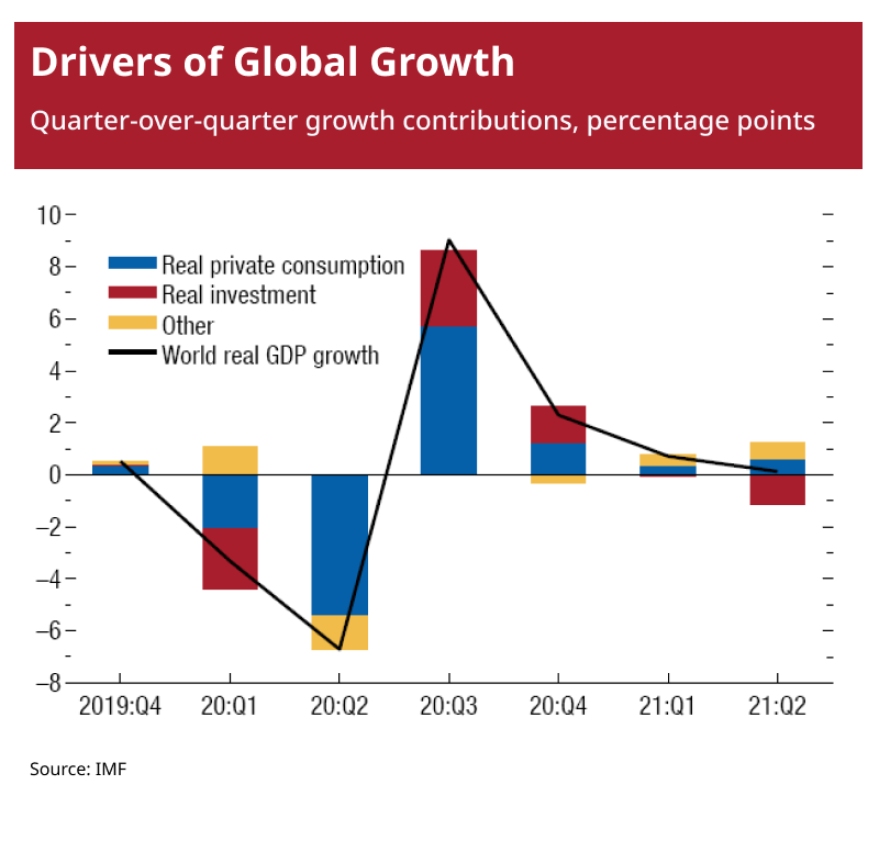 The global economy is projected to grow at 5.9 percent in 2021 and 4.9 percent in 2022 (0.1 percentage point lower in 2021 than projected in the July 2021 World Economic Outlook Update).